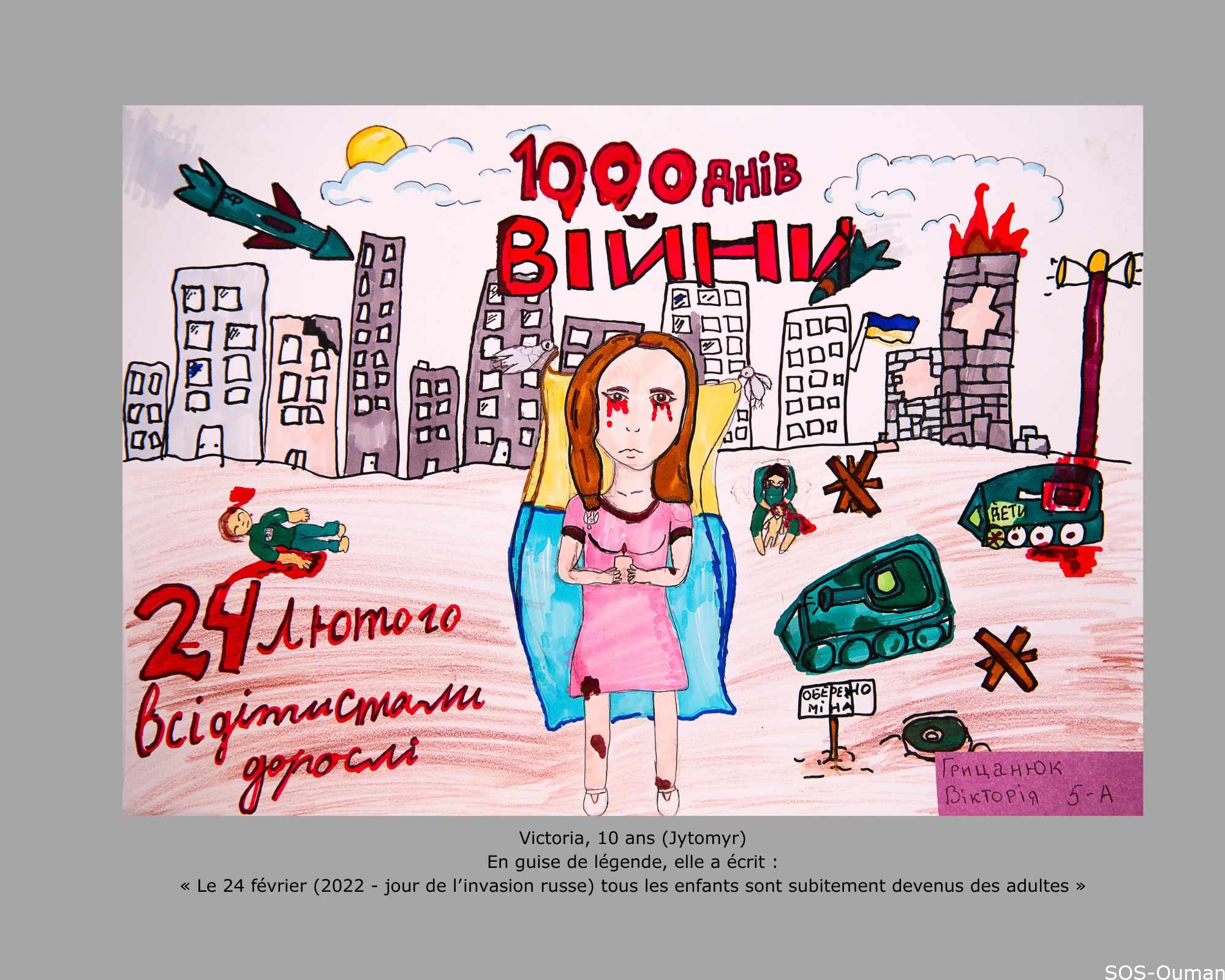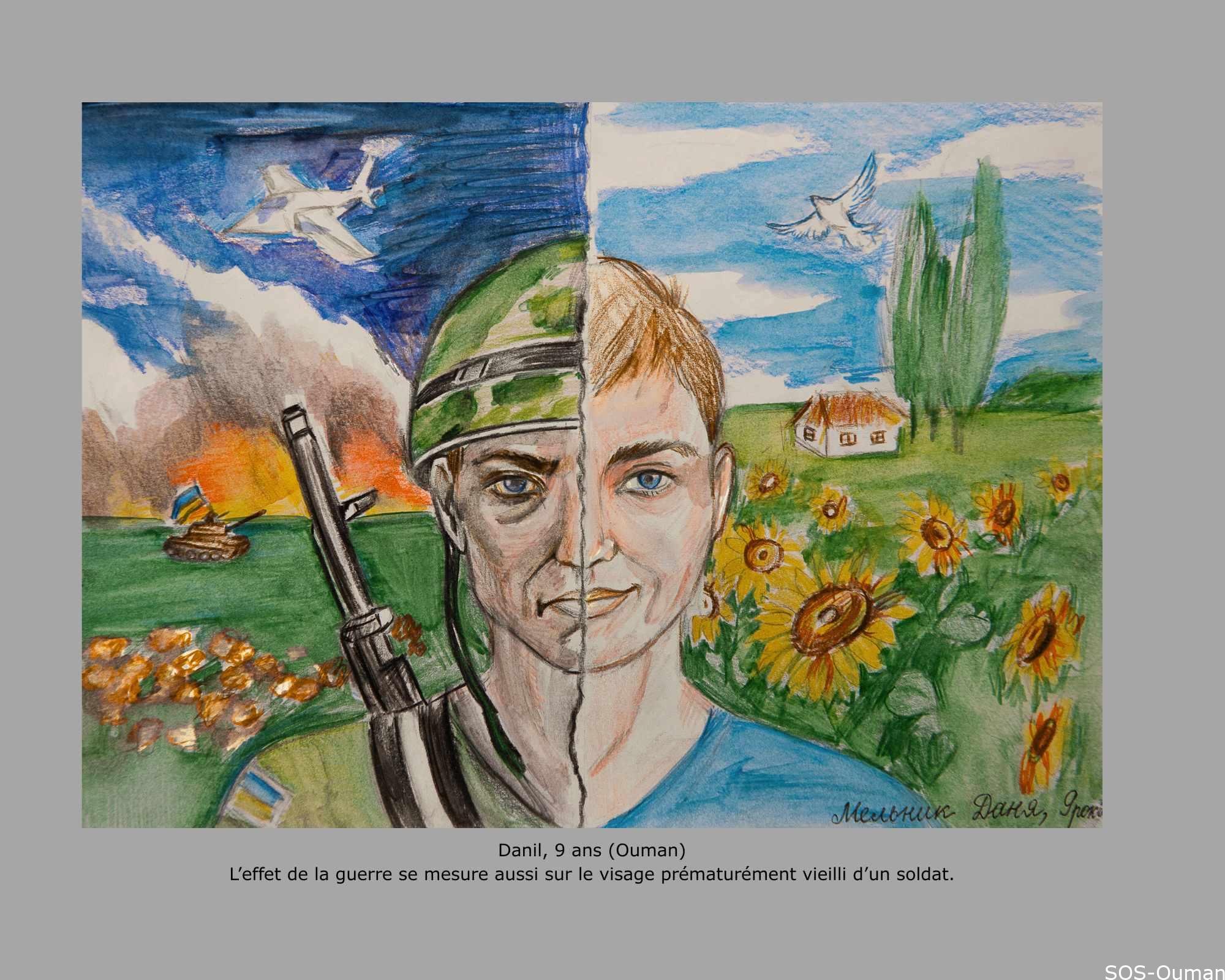 UKRAINE: Images d’une enfance volée est l’accomplissement d’une longue quête. Le catalogue publié en cette fin octobre par SOS-Ouman réunit une collection de dessins exécutés par 53 enfants originaires de toute l’Ukraine, sur le thème de la guerre et de la paix dans leur pays.